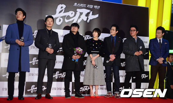17일 오후 서울 삼성동 메가박스 코엑스에서 열린 영화 '용의자' VIP 시사회에 (왼쪽부터) 공유, 박희순, 원신연 감독, 유다인, 김성균, 조재윤, 조성하가 참석하고 있다.