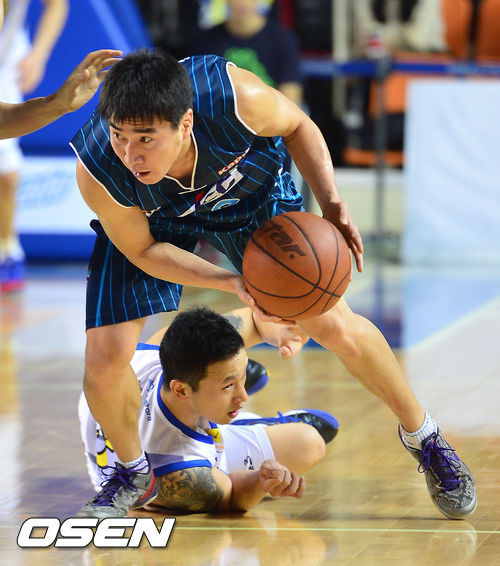 17일 오후 전북 전주실내체육관서 열린 '2013-14시즌 KB국민카드 프로농구' 전주 KCC와 서울 삼성의 경기, 2쿼터 KCC 임재현이 삼성 김승현의 공을 빼앗고 있다.