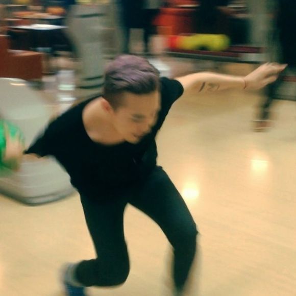 공개된 사진 속 지드래곤은 볼링에 한창인 모습이다. 눈에 띄는 건 그의 머리색. 기존의 금발 머리에서 보랏빛 염색머리로 변신해 시선을 끈다.