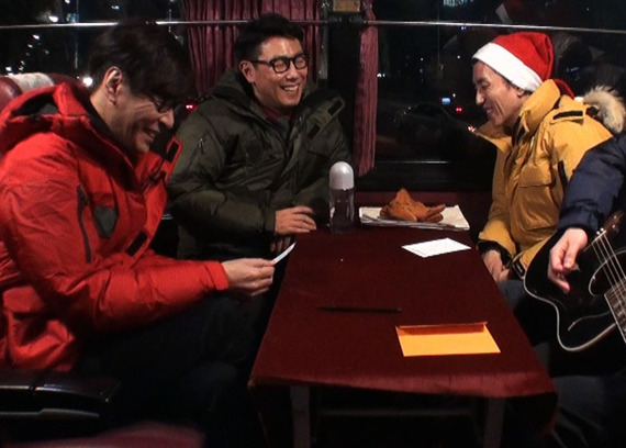 또한, 이들은 강남 한복판에서 시민들을 대상으로 ‘크리스마스를 같이 보내고 싶은 남자는?’라는 주제로 즉석 투표를 진행했고, 저녁식사 복불복 게임을 하는 등 1년 전의 ‘1박 2일’ 섬마을 음악회 때처럼 유쾌하면서도 다양한 볼거리를 준비한 것으로 알려졌다.