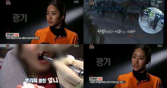 전혜빈은 “거의 제정신이 아닌 사람의 눈빛이었다”며 "지금도 여자를 때리는 남자가 있는지“라고 한숨을 내쉬었다.