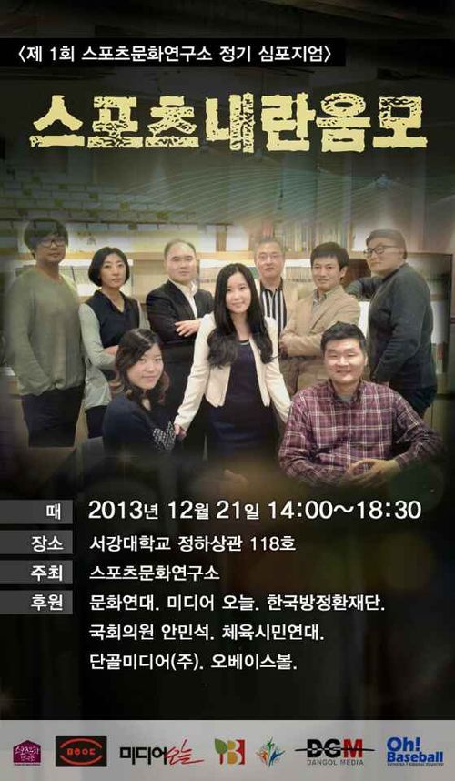 스포츠를 인문사회과학적으로 연구하는 모임, 스포츠문화연구소(소장 이대택 국민대교수)가 제 1회 스포츠문화연구소 정기 심포지엄, '스포츠내란음모'를 통해 스포츠 개혁과 스포츠를 통한 사회정의 실현을 제시한다.