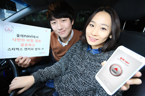 한편, KT는 올레내비 ‘경로공유’ 서비스 출시를 기념해 이벤트도 연다. 경로공유 등록 후 이벤트 페이지에 인증샷을 올린 이들 중 매주 선착순 100명에게 스타벅스 프라프치노 병커피를 증정하며, 2014년 1월 4일까지 퀴즈를 맞힌 이들 중 추첨을 통해 스타벅스 캔커피를 2,014명에게 제공한다.