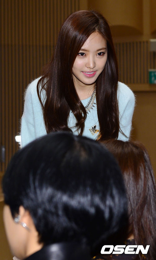 18일 오후 서울 양천구 목동 SBS 사옥에서 열린 2013 SBS 가요대전 기자간담회, 에이핑크 손나은이 인사를 하고 있다.