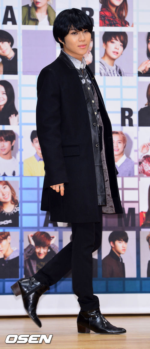18일 오후 서울 양천구 목동 SBS 사옥에서 열린 2013 SBS 가요대전 기자간담회, 샤이니 태민이 무대 앞으로 걸어나오고 있다.