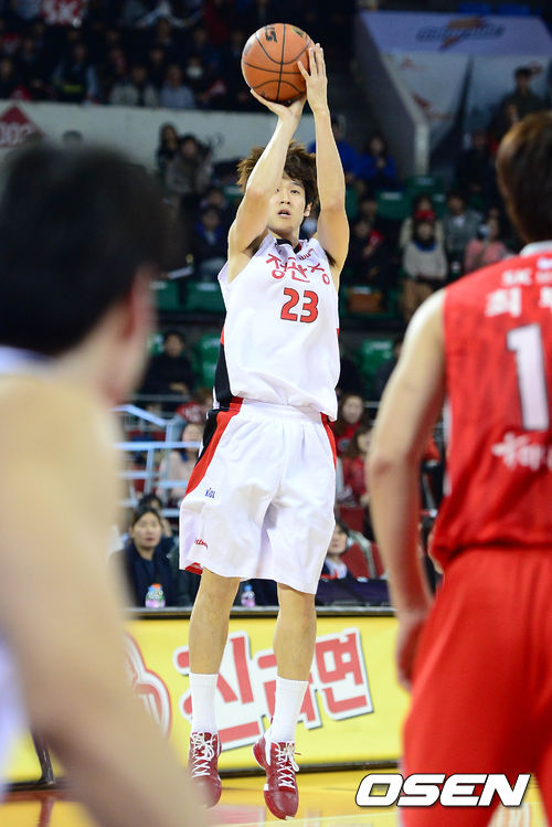 18일 오후 서울 잠실학생체육관에서 열린 '2013-2014 KB국민카드 프로농구' 서울 SK와 안양 KGC인삼공사의 경기 1쿼터 전성현이 외곽슛을 시도하고 있다.