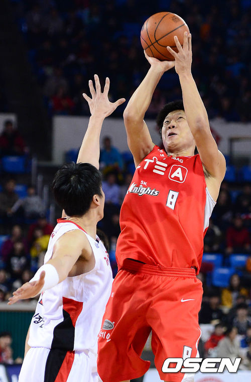 18일 오후 서울 잠실학생체육관에서 열린 '2013-2014 KB국민카드 프로농구' 서울 SK와 안양 KGC인삼공사의 경기 3쿼터 박상오가 슛을 시도하고 있다.