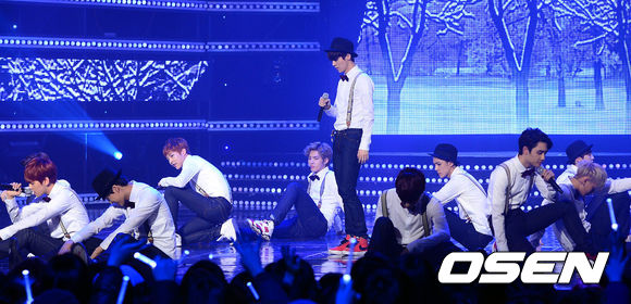 18일 오후 경기도 고양시 일산 장항동 빛마루 방송지원센터에서 진행된 MBC MUSIC '쇼 챔피언'에서 그룹 EXO가 화려한 무대를 펼치고 있다.