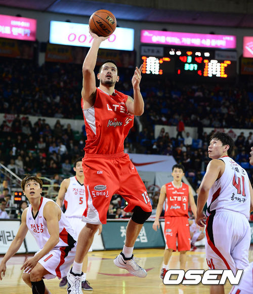 18일 오후 서울 잠실학생체육관에서 열린 '2013-2014 KB국민카드 프로농구' 서울 SK와 안양 KGC인삼공사의 경기 3쿼터 김민수가 골밑슛을 시도하고 있다.