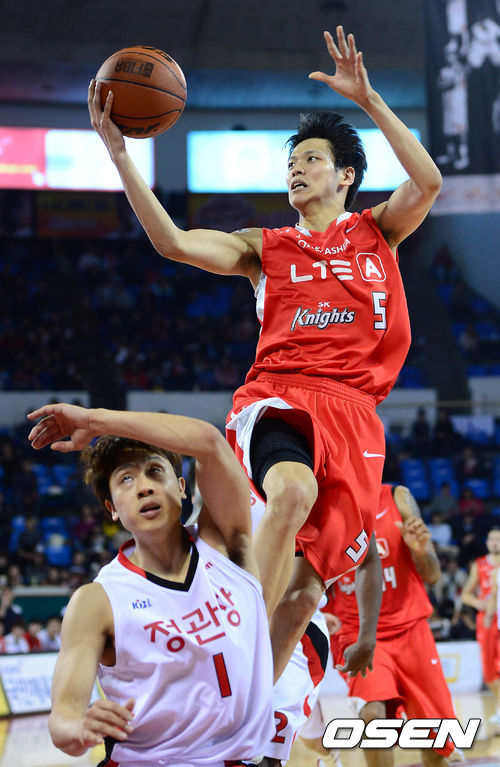 18일 오후 서울 잠실학생체육관에서 열린 '2013-2014 KB국민카드 프로농구' 서울 SK와 안양 KGC인삼공사의 경기 4쿼터 김선형이 슛을 시도하고 있다.