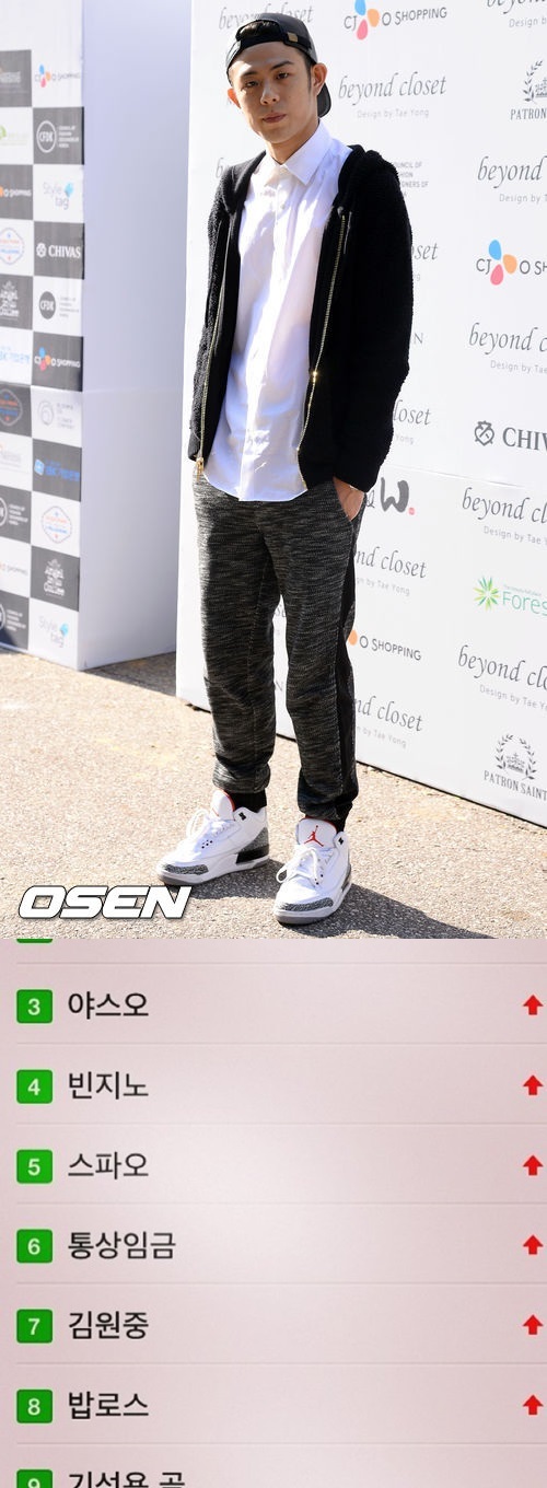 공개된 사진은 한 포털사이트 실시간 검색어 순위를 캡처한 것인데 본인의 이름인 빈지노가 4위에 오른 것을 비롯해 이날 화제가 된 야스오, 스파오, 통상임금, 김원중, 밥로스, 기성용 골 등이 순위에 올라있는 모습이다.