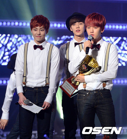 18일 오후 경기도 고양시 일산 장항동 빛마루 방송지원센터에서 진행된 MBC MUSIC '쇼 챔피언'에서 1위를 차지한 그룹 EXO 백현이 앙코르무대를 펼치고 있다.