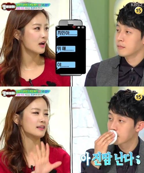 김지민은 18일 방송된 KBS 2TV 예능프로그램 '맘마미아'에서 허경환의 잦은 연락을 고백했다.