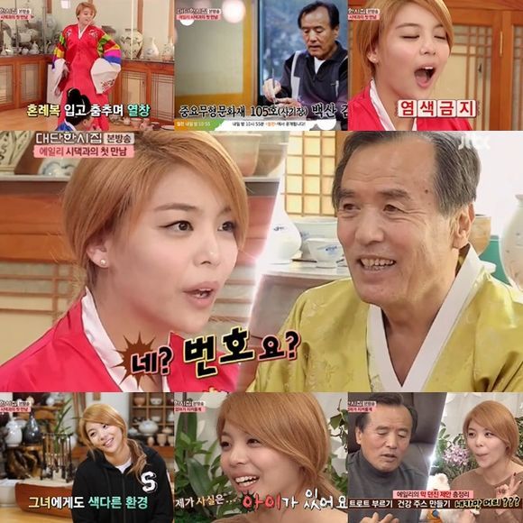 에일리에게는 모든 것이 낯선 가운데 더욱 긴장되는 순간이 다가왔다. 집안의 최고 권력자 시조부모의 만남이 기다리고 있었던 것. 특히 시할아버지는 카리스마를 뿜으며 에일리를 맞이했고 에일리가 인사를 한 후 바로 고향부터 시작해 이름, 직업 등을 물어보고 종이에 세세하게 적었다. 시할아버지가 “본은 뭐냐”고 묻자 한국말이 아직 서툰 에일리는 “번호가 뭐냐고요?”라고 동문서답을 하는 등 두 사람의 대화가 제대로 이뤄지지 않아 웃음을 자아냈다.