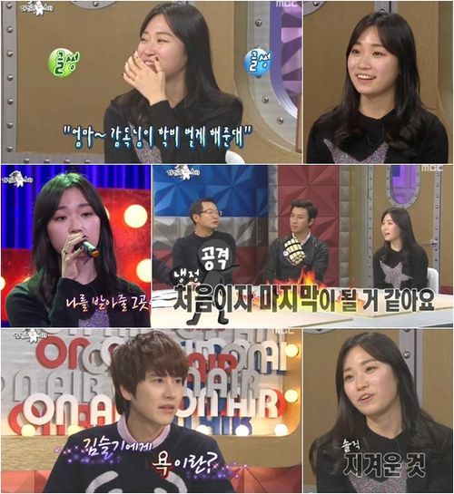 김슬기는 지난 18일 방송된 MBC 예능프로그램 '황금어장-라디오스타'을 통해 토크쇼에 입성했다. 자신을 데뷔시켜준 장진 감독과 박건형, 김연우와 함께 출연했다. 세 남자가 능청스럽게 입담을 뽐내고 개인기를 선보이는 동안, 김슬기는 조용히 경청하며 자신의 질문을 기다렸다.
