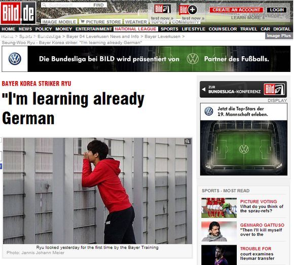 제주 유나이티드에서 독일 분데스리가 레버쿠젠에 임대된 류승우(20)가 독일 언론과 인터뷰를 가졌다.