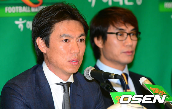 홍명보 감독이 인사말을 하고 있다.