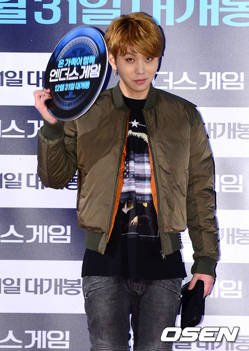 비스트 용준형이 레드카펫 행사중 팬들의 생일 축하 메시지에 손을 흔들고 있다.
