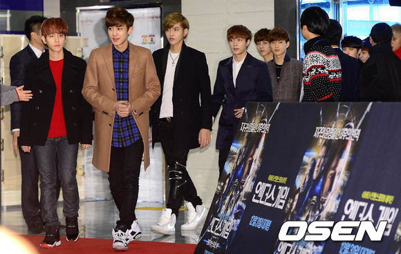 그룹 EXO가 레드카펫 행사를 갖고 있다.
