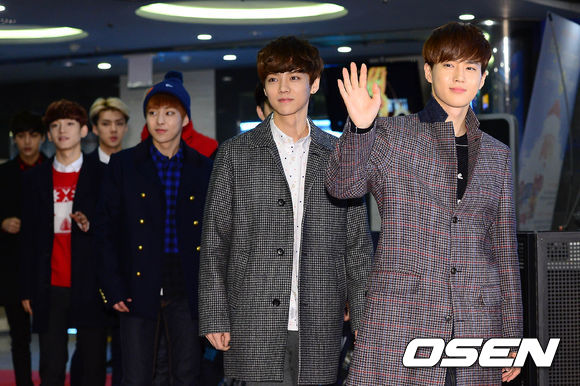 그룹 EXO가 레드카펫 행사를 갖고 있다.
