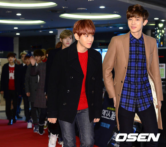 그룹 EXO가 레드카펫 행사를 갖고 있다.