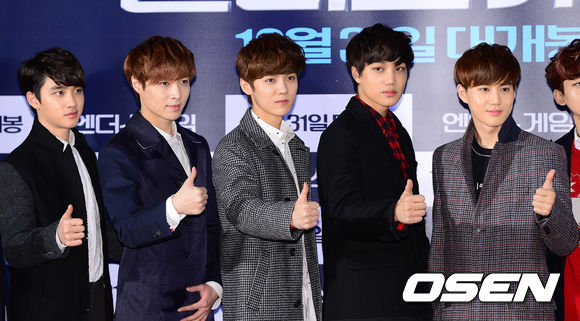 그룹 EXO가 레드카펫 행사를 갖고 있다.