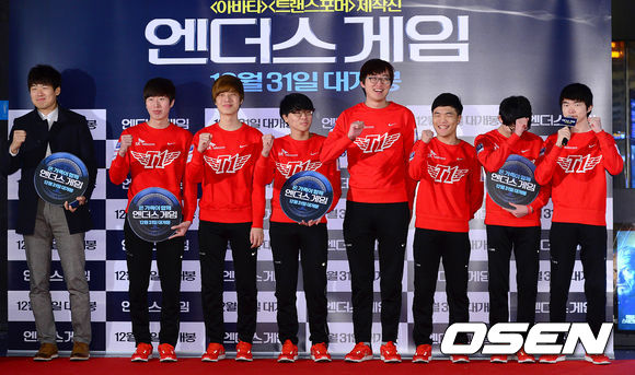 SK텔레콤 게임단이 레드카펫 행사를 갖고 있다.