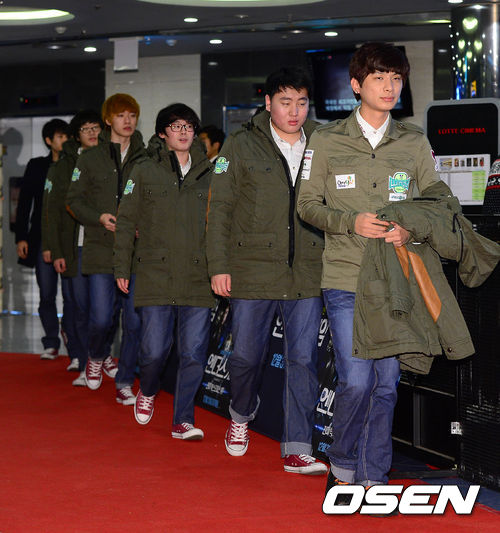 진에어 게임단이 레드카펫 행사를 갖고 있다.