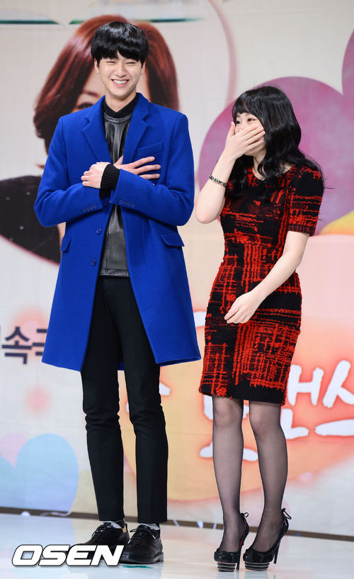 유민규와 곽지민이 포토타임을 갖고 있다.