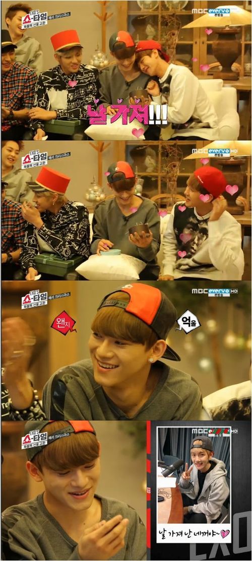 이어 그는 “날 가져 첸”이라고 부연 설명해 첸을 당황하게 했다. 특히 사진에는 ‘나 예뻐? 이젠 난 네 거야’라는 말까지 더해 있어 멤버들을 웃게 만들었다.