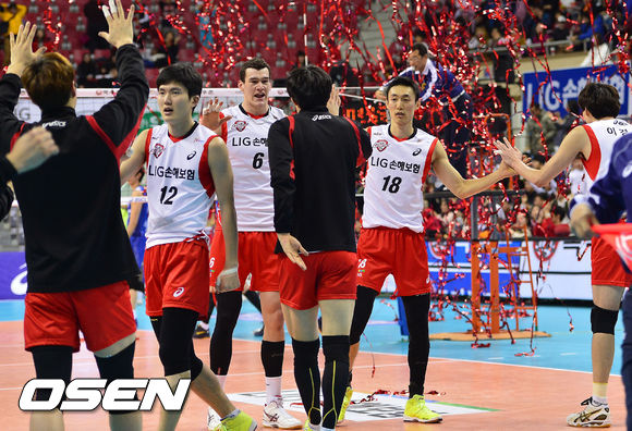 경기종료 후 LIG 선수들이 승리의 기쁨을 나누고 있다. / soul1014@osen.co.kr