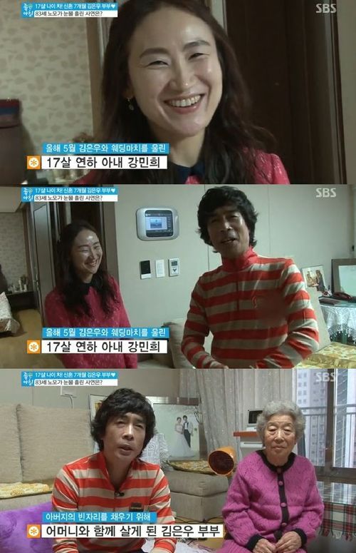 김은우는 “제가 젋게 사는 비결이다”라며 아내를 소개했다. 김은우는 아내를 소개하면서 수줍은 모습을 나타내기도 했다. 김은우 아내는 17살 연하로 화제가 됐다.