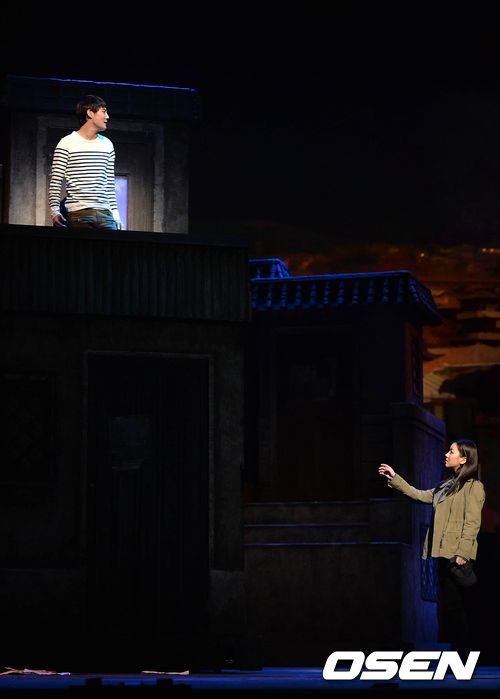 김준수와 오소연이 20일 오후 서울 세종로 세종문화회관에서 열린 뮤지컬 '디셈버: 끝나지 않는 노래'(이하 '디셈버') 프레스콜에서 연기를 펼치고 있다.