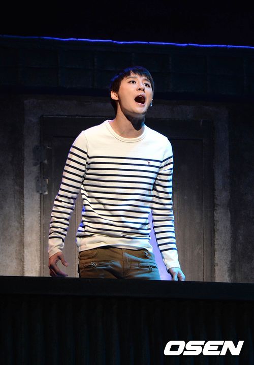 김준수가 20일 오후 서울 세종로 세종문화회관에서 열린 뮤지컬 '디셈버: 끝나지 않는 노래'(이하 '디셈버') 프레스콜에서 연기를 펼치고 있다.