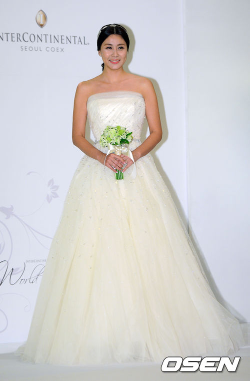 배우 양정아가 결혼식에 앞서 열린 기자회견에서 포토타임을 갖고 있다.