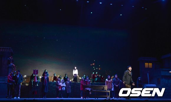 김준수와 오소연을 비롯한 뮤지컬 배우들이 20일 오후 서울 세종로 세종문화회관에서 열린 뮤지컬 '디셈버: 끝나지 않는 노래'(이하 '디셈버') 프레스콜에서 연기를 펼치고 있다.