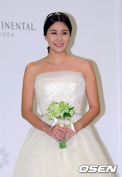 배우 양정아가 결혼식에 앞서 열린 기자회견에서 포토타임을 갖고 있다.