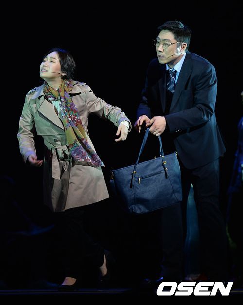 김슬기와 김대종을 비롯한 뮤지컬 배우들이 20일 오후 서울 세종로 세종문화회관에서 열린 뮤지컬 '디셈버: 끝나지 않는 노래'(이하 '디셈버') 프레스콜에서 연기를 펼치고 있다.