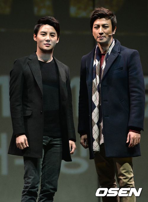 김준수와 박건형이 20일 오후 서울 세종로 세종문화회관에서 열린 뮤지컬 '디셈버: 끝나지 않는 노래'(이하 '디셈버') 프레스콜에서 포토타임을 갖고 있다.
