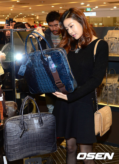 배우 강소라가 리누이 매장에서 가방을 살펴보고 있다.
