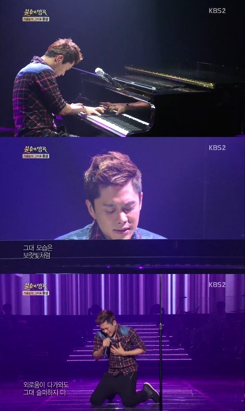 이기찬은 21일 오후 방송된 KBS 2TV '불후의 명곡-전설을 노래하다'에서 윤상의 곡 '보랏빛 향기'를 열창했다.