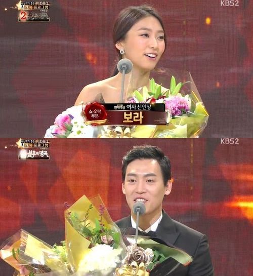 가수 존박과 걸그룹 씨스타 보라가 쇼·오락부문 남녀신인상의 영광을 안았다.