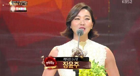 장윤주는 21일 오후 서울 여의도 KBS에서 열린 2013 KBS 연예대상에서 '옥탑방 라디오'로 라디오DJ상의 영광을 안았다.