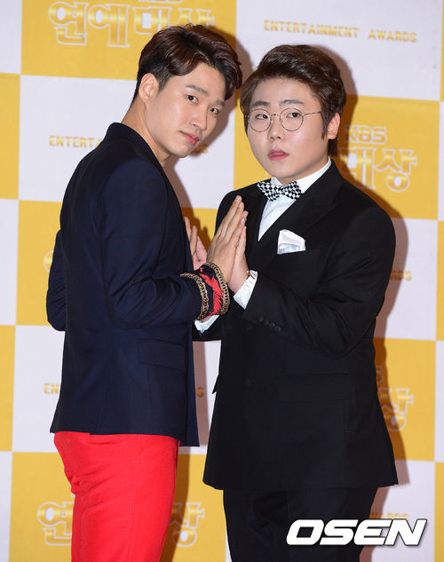 시상식에 앞서 김기리, 송필근이 포즈를 취하고 있다.