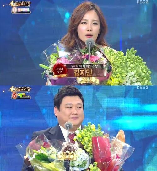 먼저 여자 최우수상 수상자인 김지민은 "올해는 버리고 싶었던 날이 하루도 없었다. 알차고 소중했다. 많이 떨린다. 코미디언들이 가장 듣기 좋은 말은 '웃기다'다. 웃기고 싶다"고 말했다. 이어 그는 여러 스태프들과 지인들의 이름을 언급했다. 마지막으로 그는 "이 상은 저에게 아이디어를 준 김대성의 것"이라며 소감을 마무리했다.