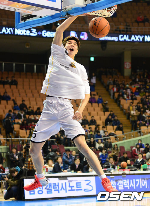경기에 앞서 덩크슛 콘테스트 예선에서 드림팀 김종규가 덩크슛을 하고 있다.