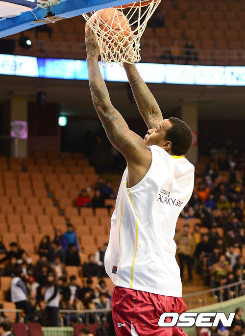 경기에 앞서 열린 덩크슛 콘테스트 예선에서 드림팀 제퍼슨이 덩크슛을 하고 있다.
