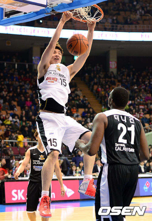 1쿼터 드림팀 김종규가 덩크슛을 시도하고 있다.