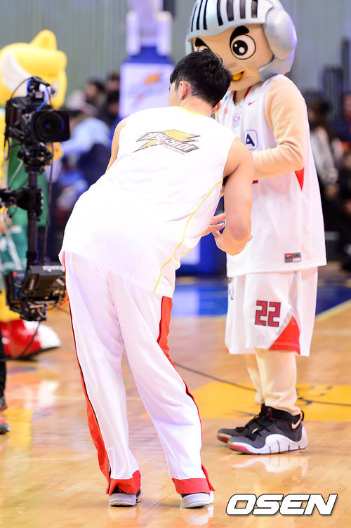 하프타임 3점슛 콘테스트에서 우승한 변기훈이 세레모니를 펼치고 있다.