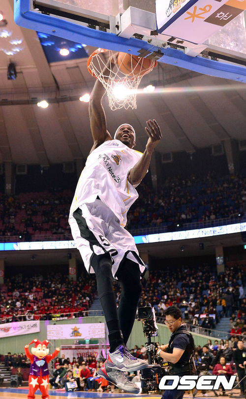 22일 오후 서울 잠실동 잠실실내체육관에서 열린 'KB국민카드 2013-2014 프로농구 올스타전' 경기 하프타임 덩크슛 콘테스트에서 리처드슨이 덩크슛을 시도하고 있다. 리처드슨은 용병 덩크왕에 등극했다.